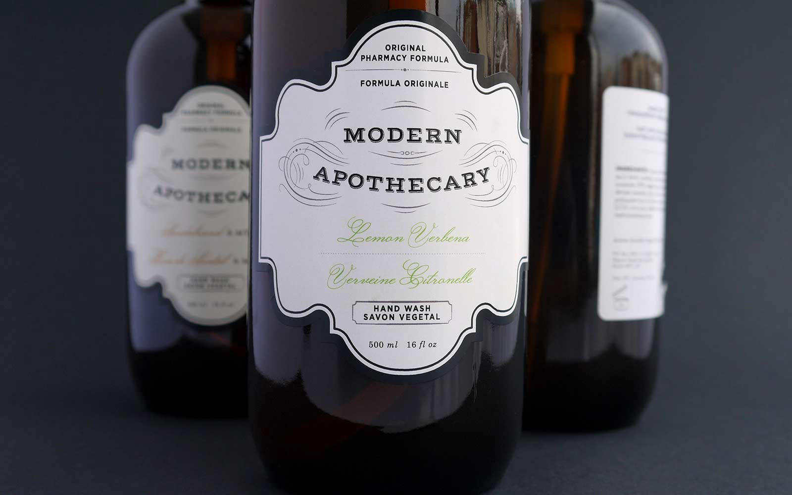 Originally called Modern Apothecary, the name called for a logo that blended modernness with the feeling of an antique apothecary. The mix of antique calligraphic lines with a modern font clearly articulates the intended brand image.